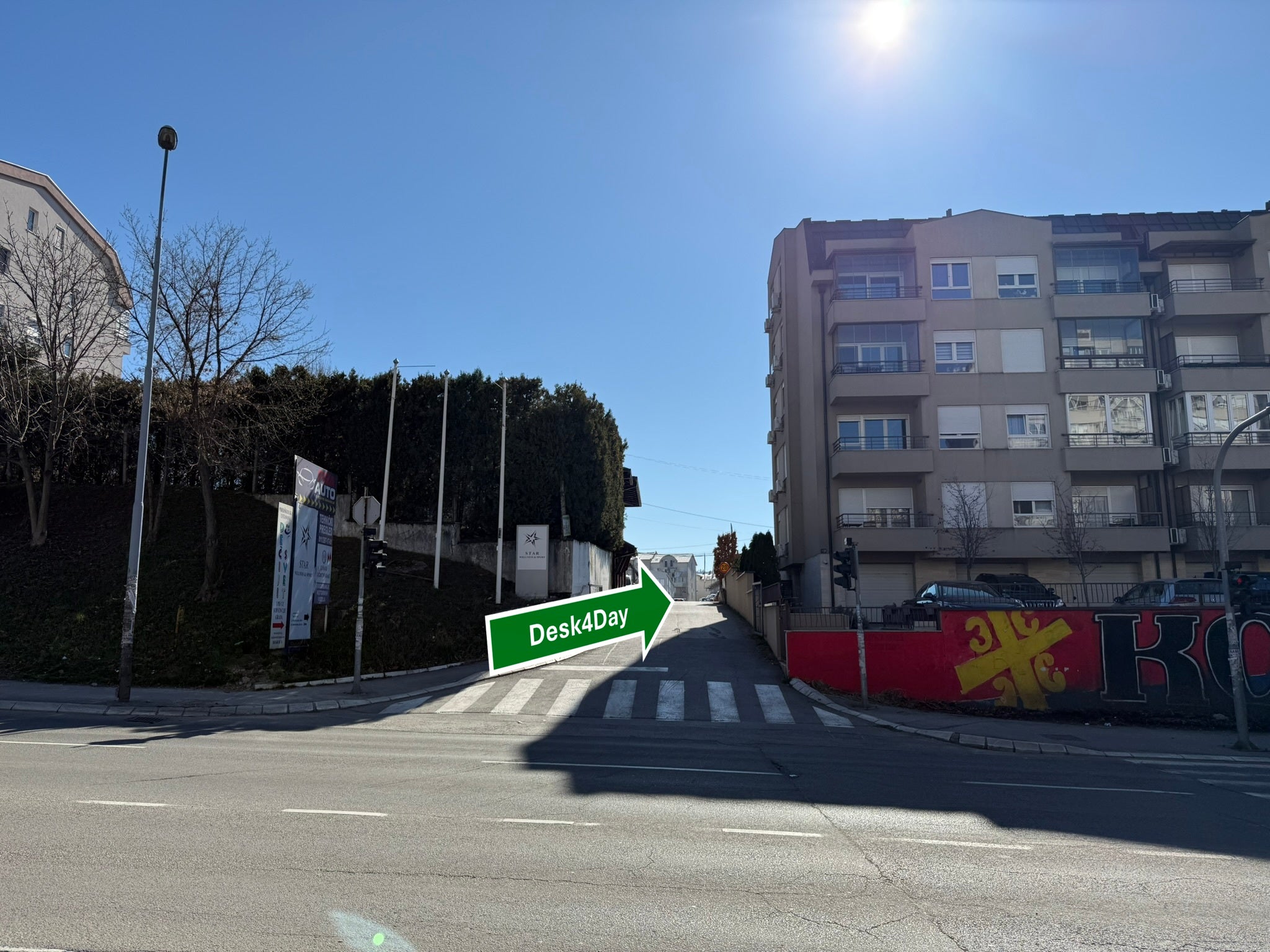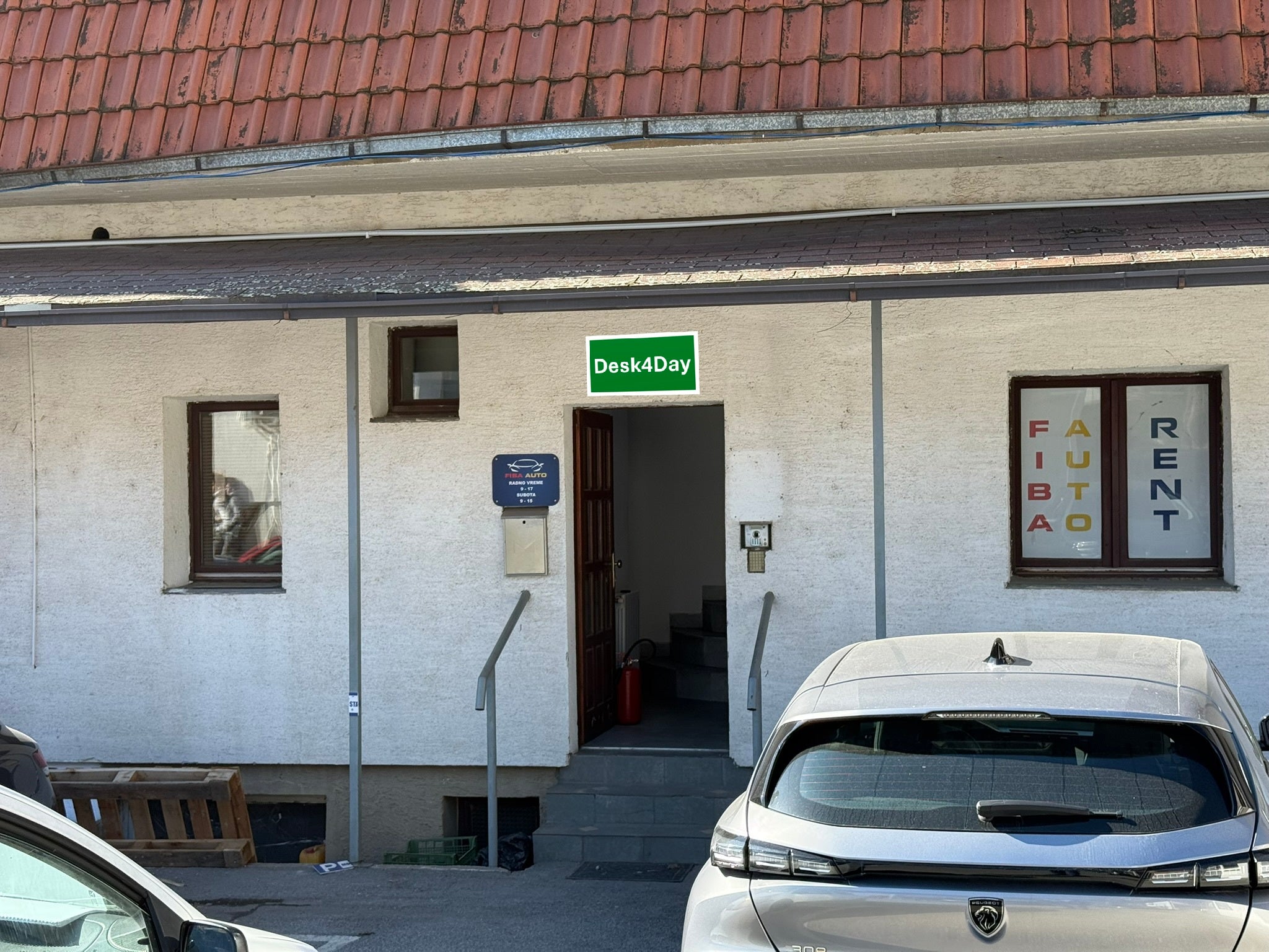 Naš radni prostor nalazi se na prvom katu zgrade, neposredno iznad Rent-a-Car Fiba Auto. Ulaz je s ulice, Do prostora se dolazi stepenicama.